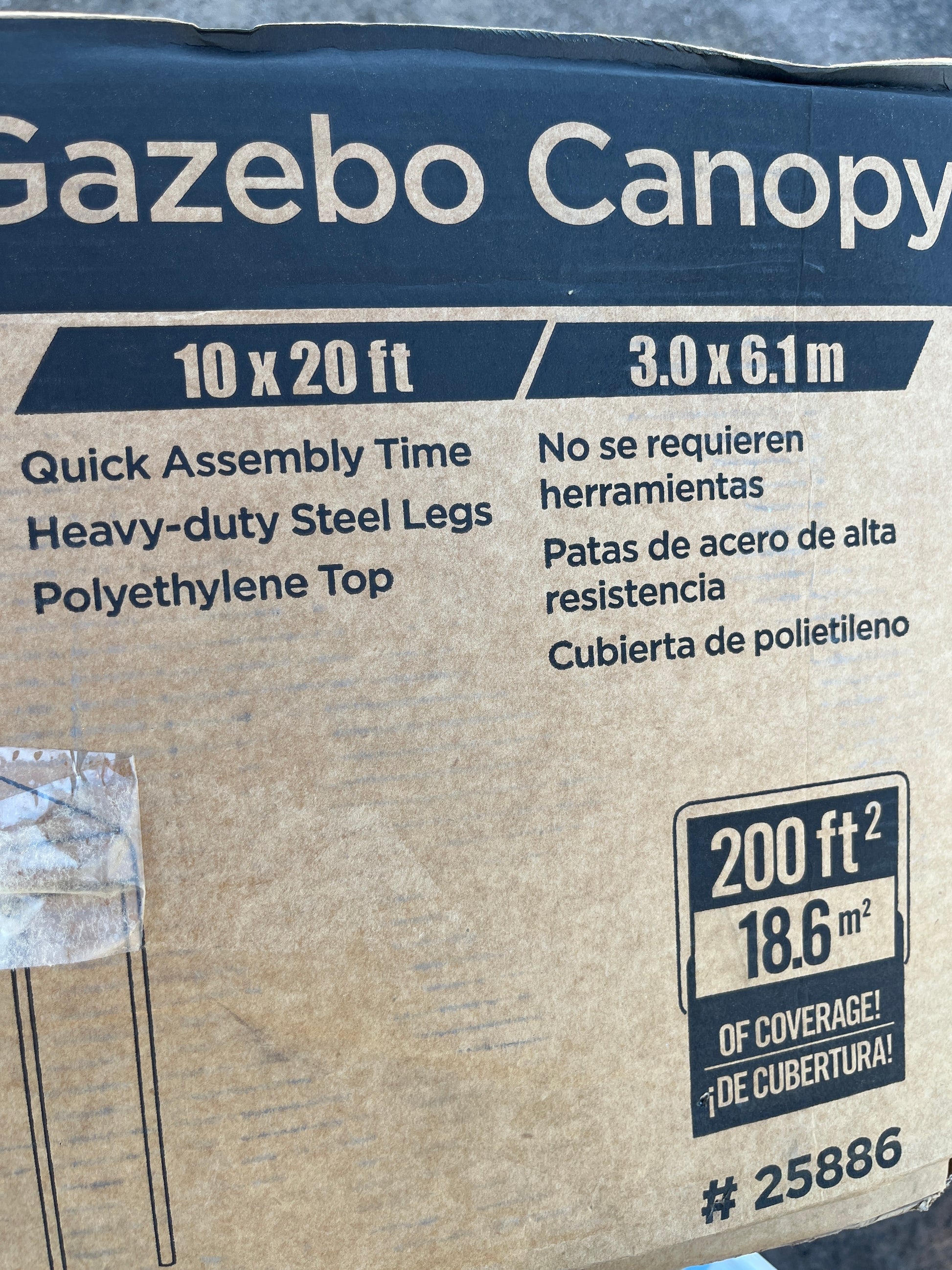 Great for keeping your car out of the sun. Quick assembly time no tools required. Heavy duty, steel legs. Polyethylene top inbox. Assembly required