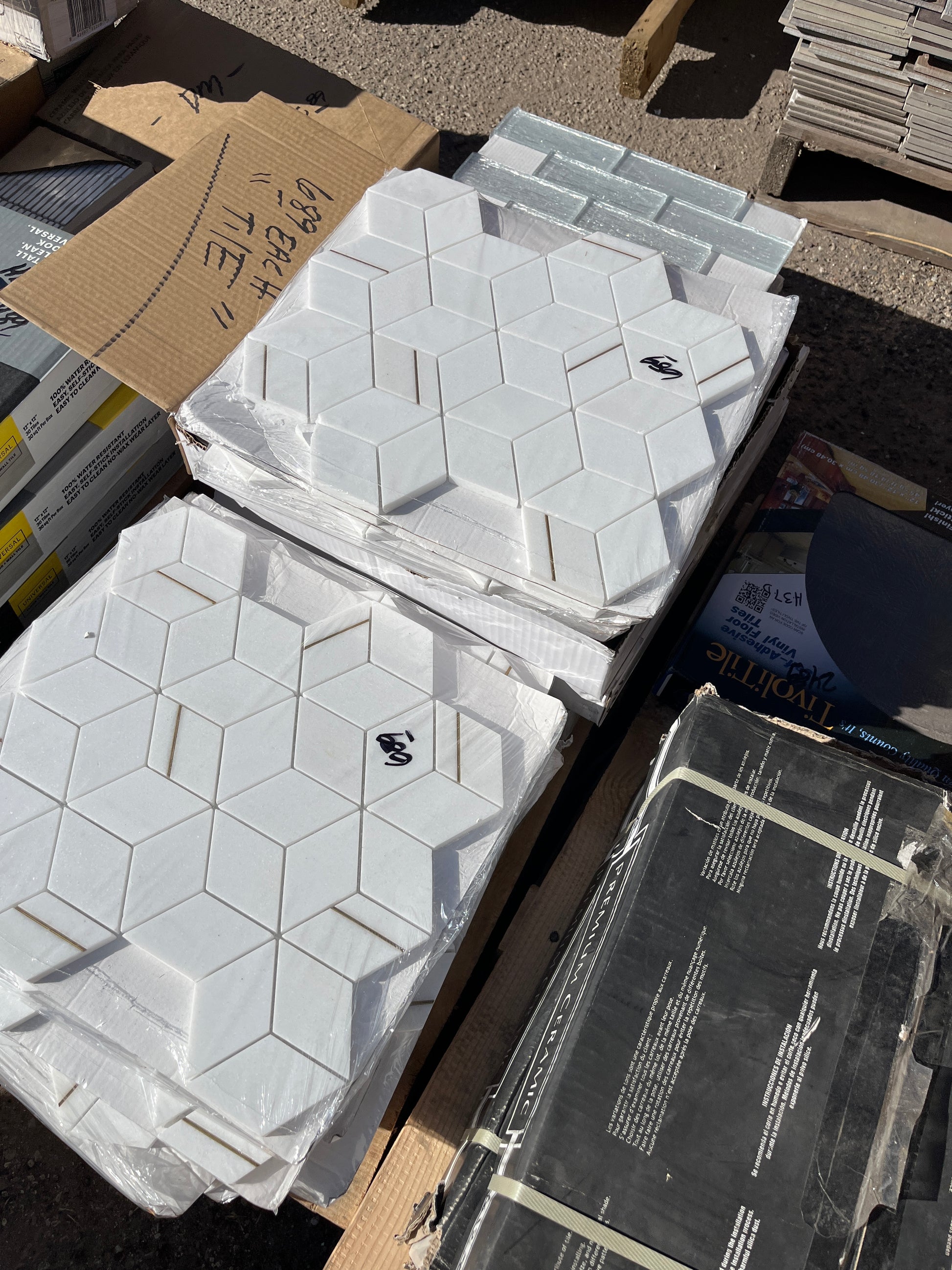 Thousands of square feet Jose tile. For walls shower floors backsplash is great variety. And low low prices almost all them are only 689 per sheet. Brand new! The pictures are only a few of the styles we have.