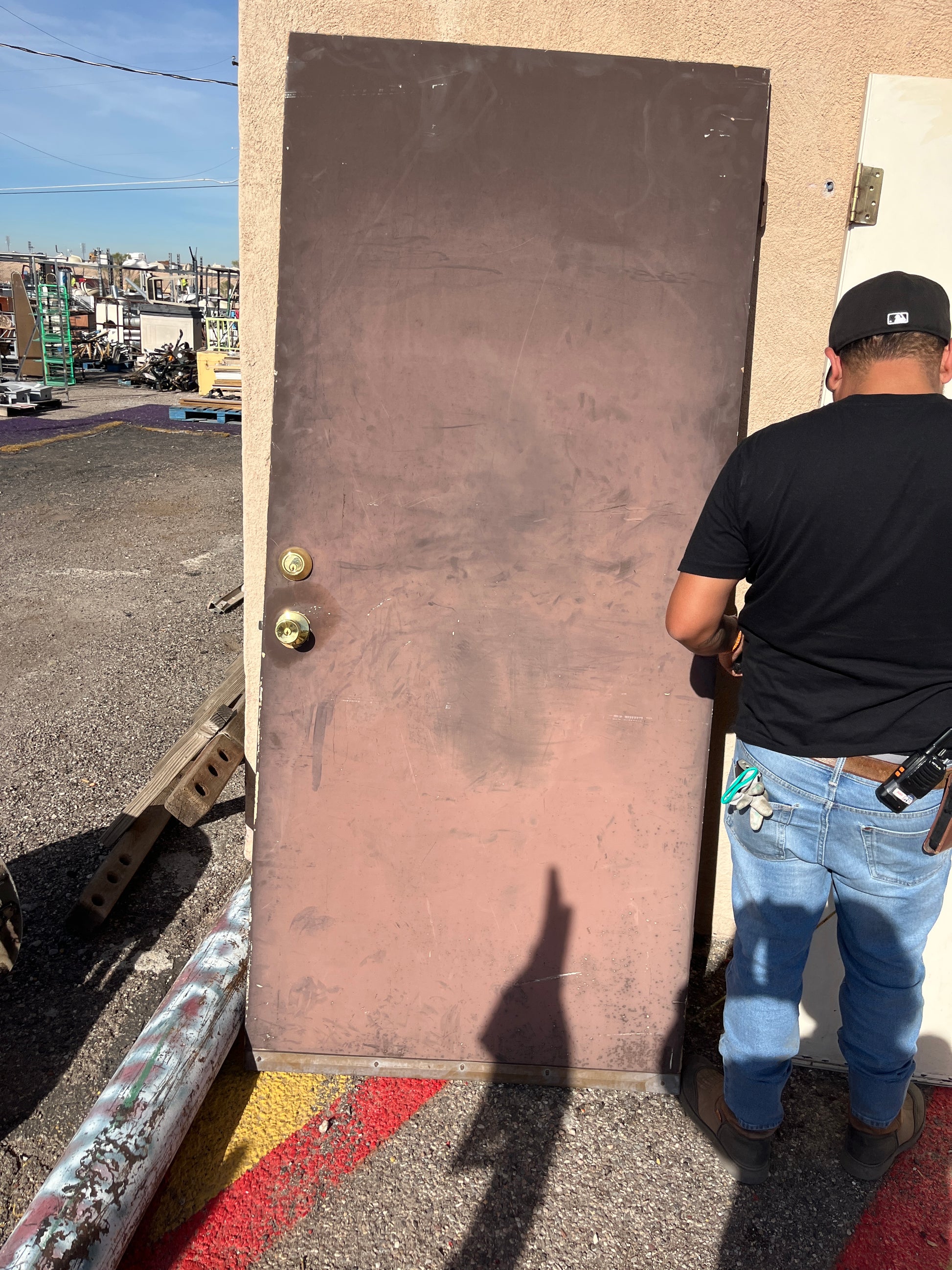 White and one side brown on the other measures 36 x 80. Not beautiful, but will work great for your project