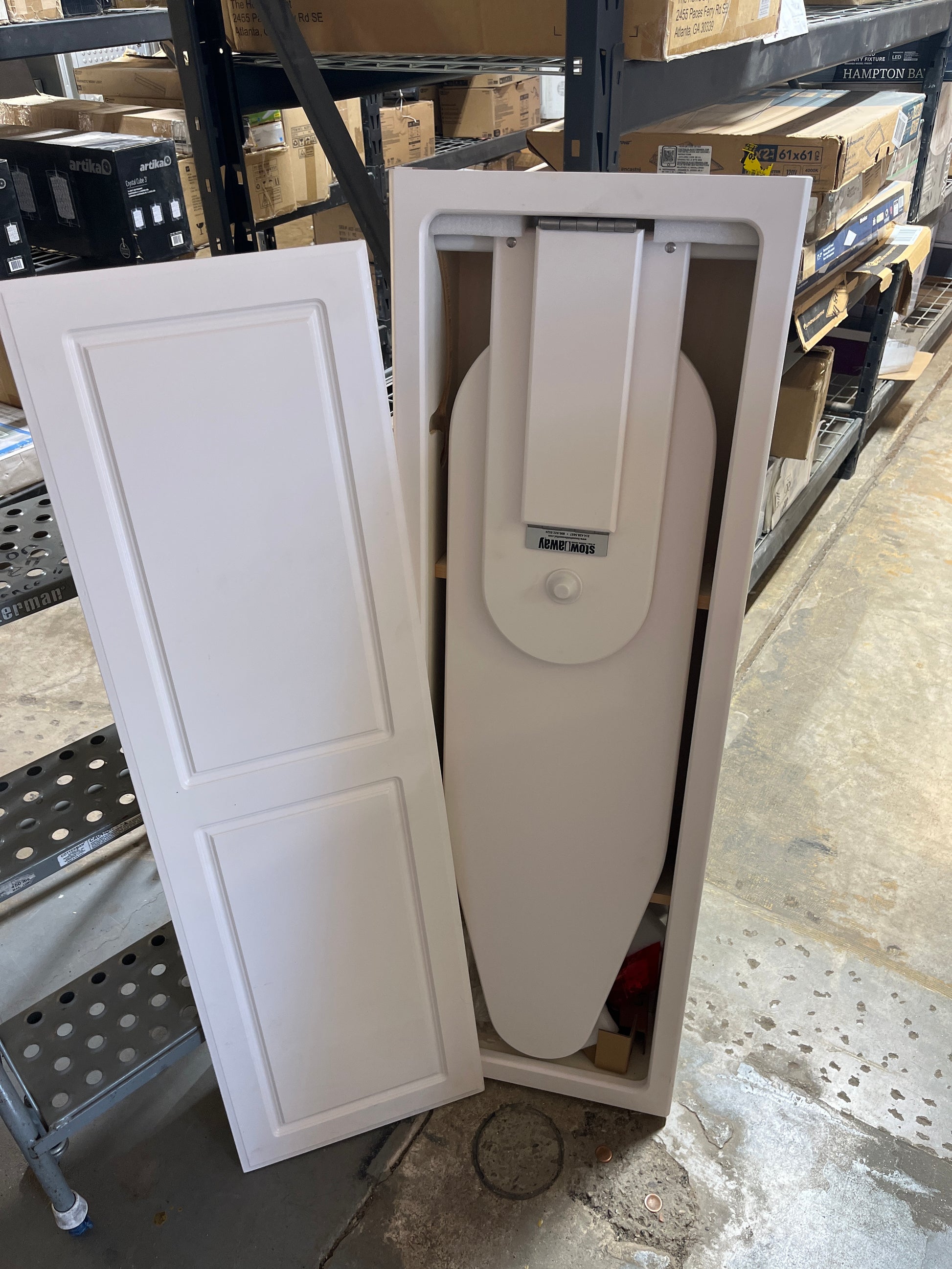 Brand new!. White. Bargain priced. Cabinet door can swing either way