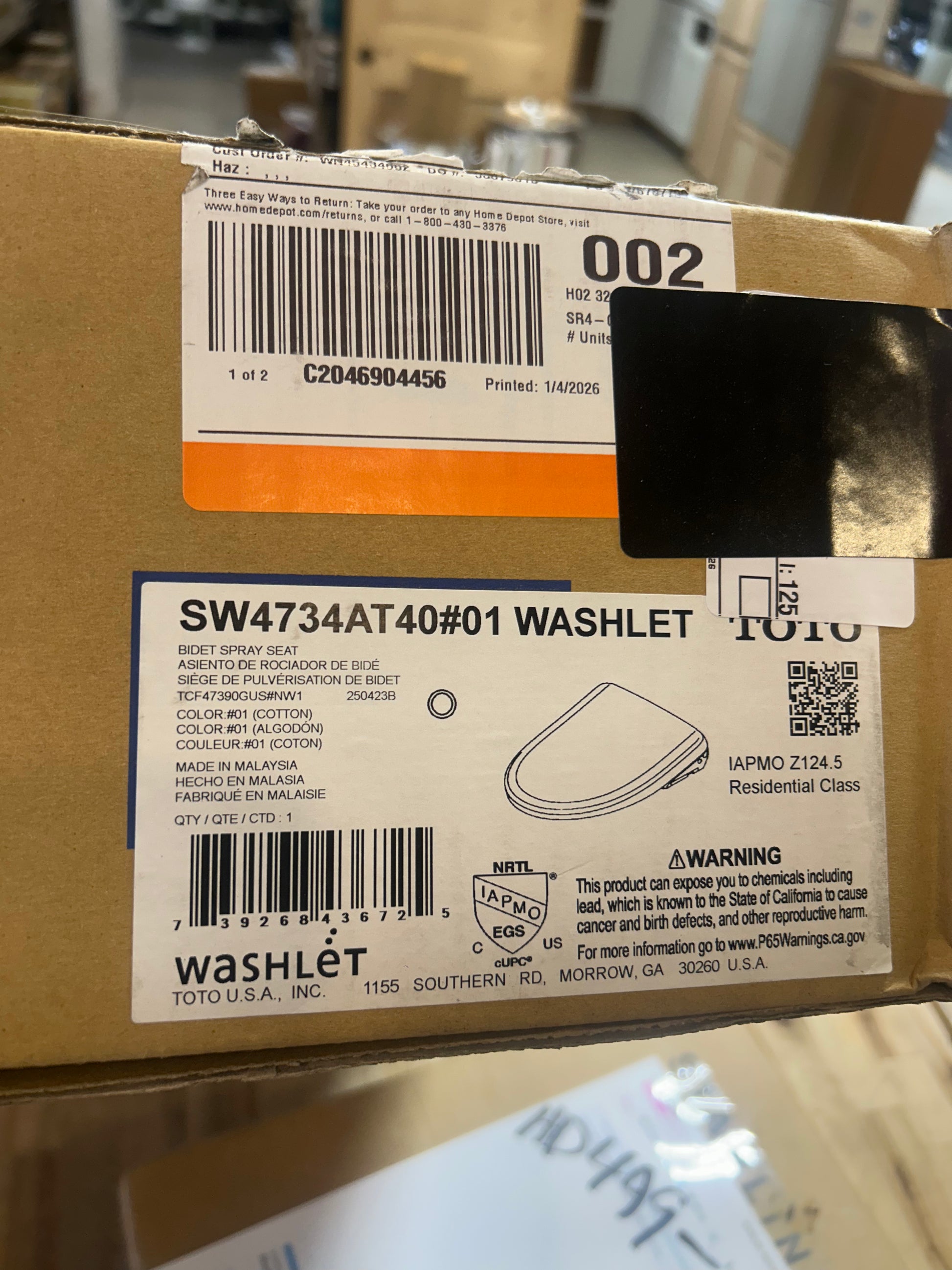 Toto S7A WASHLET elongated electric bidet seat auto open and close