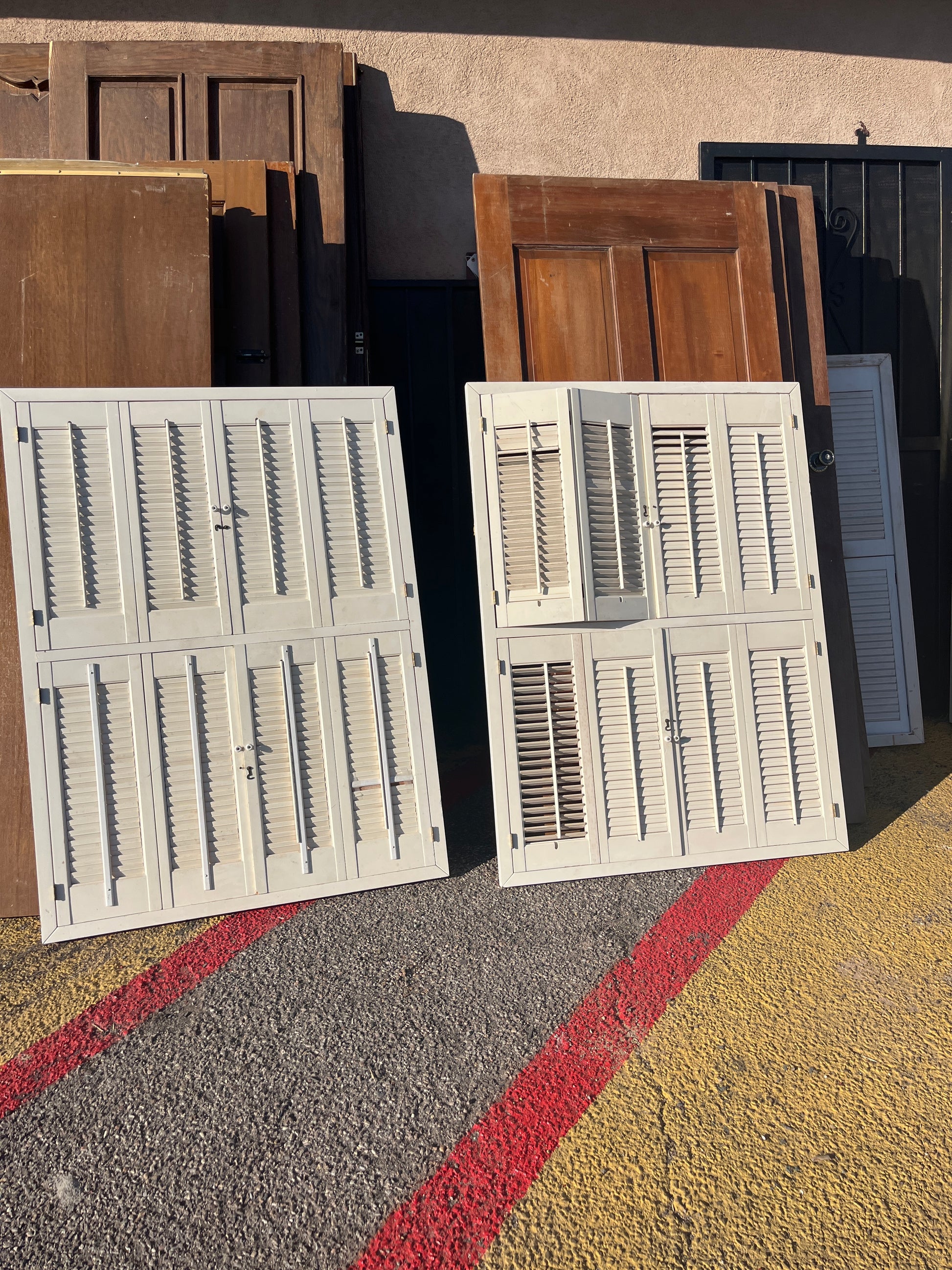 All wood. 40 inches wide 55 inches tall good condition. We have two sets each one $79.89