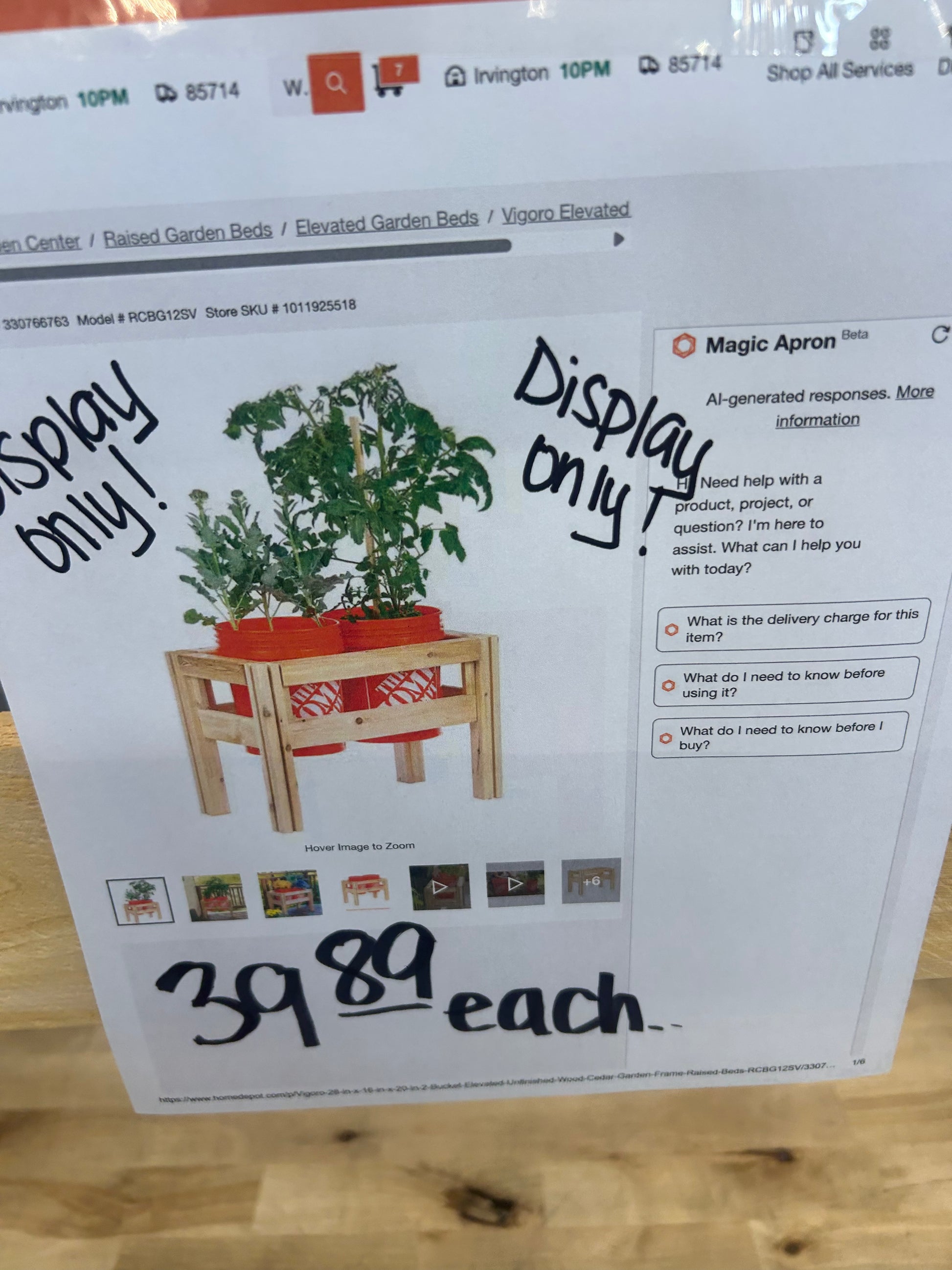Vigoro 28” x 16” x 20” 2-bucket elevated unfinished wood cedar garden frame raised beds